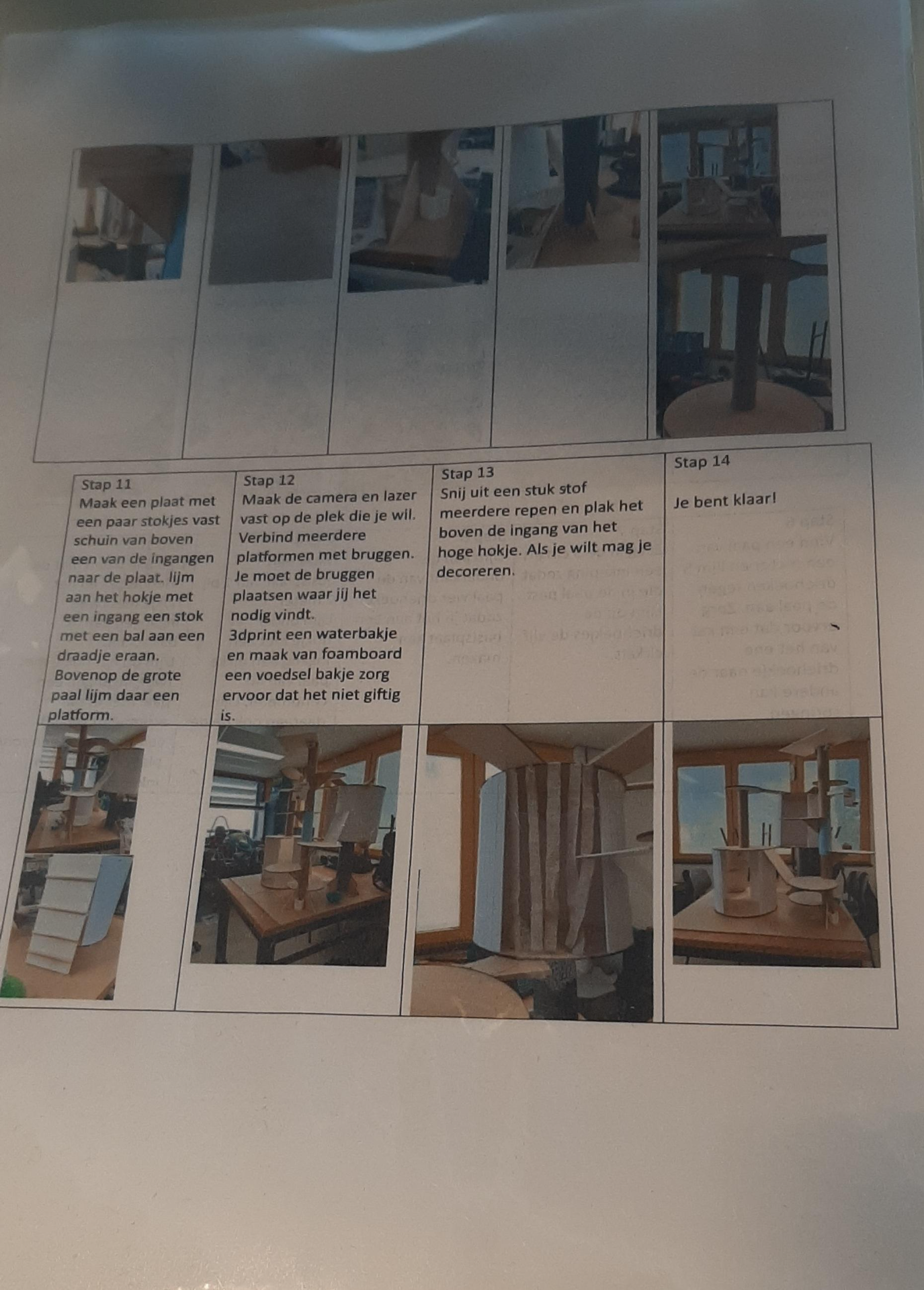 Wij hebben een echte maquette gemaakt van ons ontwerp. Helaas is onze maquette wel kwijtgeraakt en hebben wij dus geen foto's hiervan. Wij hebben bijna het hele toestel gemaakt met de lasercutter. Het toestel heeft twee verschillende slaapplekken, verschillende speelplekken en een eetgedeelte, Wij hebben erg lang eraan gewerkt en ik ben er erg trots op. Ik denk dat wij een van de mooiste maquettes hebben gemaakt. We liepen alleen erg achter in het begin. Dit hadden we wel weer opgepakt door na school aan onze maquette te werken. Wij hebben ook een online ontwerp gemaakt zoals je op de foto links ziet. Wij hadden ook een aantal tekeningen gemaakt. Helaas hebben we die ook kwijtgeraakt.