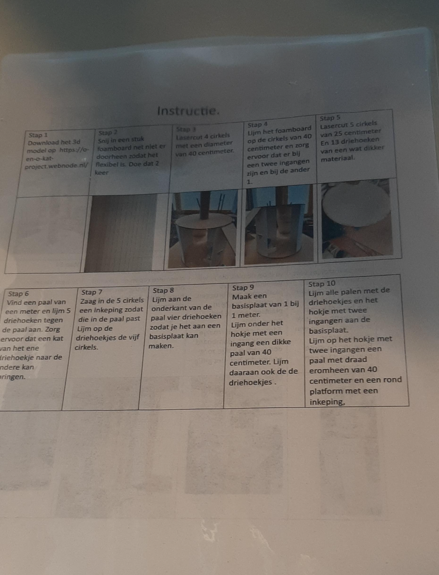 Wij hebben ook een instructable gemaakt. Een instructable is een bouwhandleiding die je aangeeft hoe je ons kattentoestel moet maken. De instructable is hiernaast te zien op de foto links te zien.
